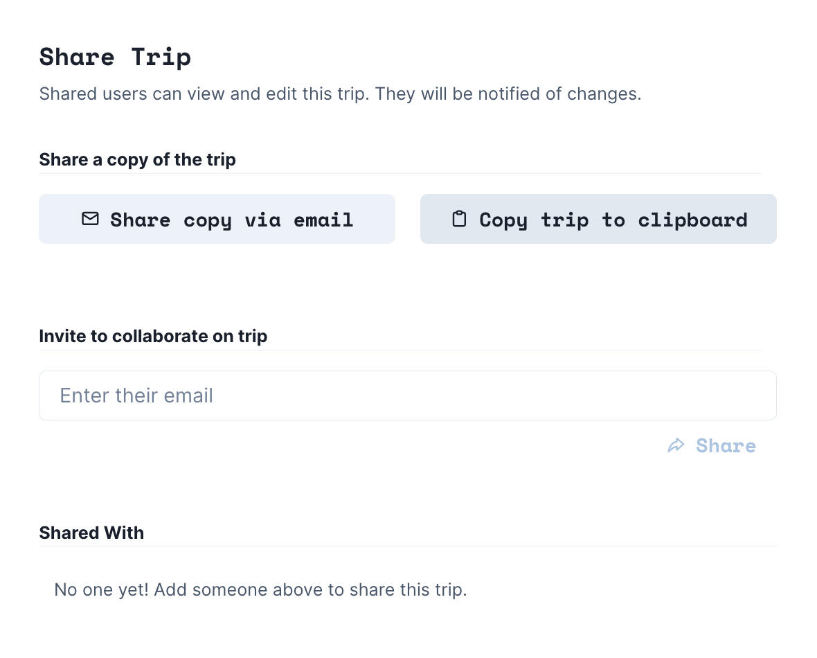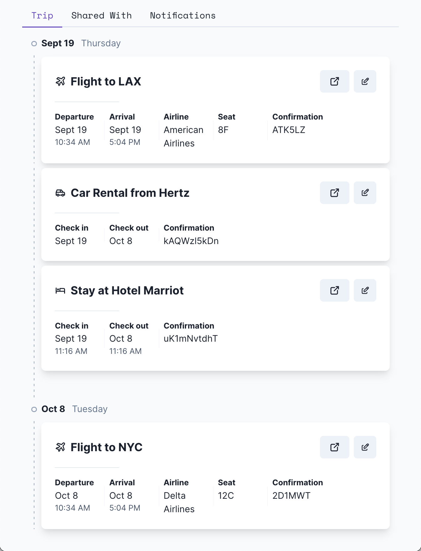 No-frills travel itinerary app. Keep your trip itinerary in one place, share it with one click, and get real time updates about your trip.